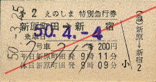 第4あしがら・小田原→新宿・400円 昭和53年11月27日・小田原駅発行 |