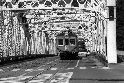 6000・6500系 犬山橋の道路の交通量が増加し, 車と電車との接触事故が発生するようになり, 電車の運行の支障になっていたことから, 道路と歩道は, 並行して架設された“ツインブリッジ”に移り, 旧橋は電車専用になりました。 急行 豊川稲荷行 6000・6500系 撮影 1985.11.2 新鵜沼-犬山遊園 〔名古屋鉄道 犬山線〕 |