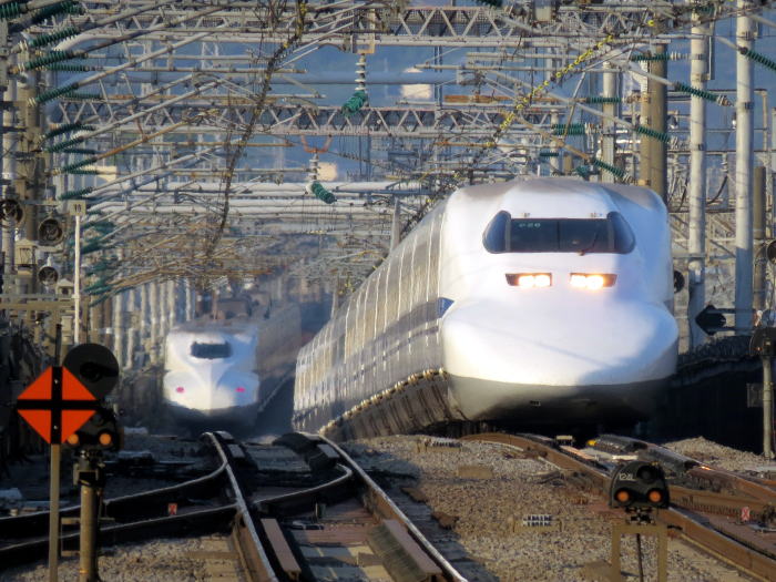 東海道新幹線を走る車輌は,ホワイトにブルーラインの700系とN700系に限られ,
