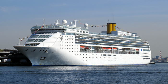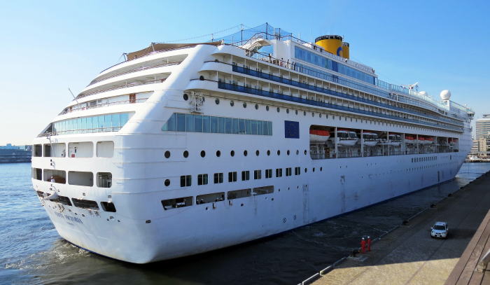 | 75166G.T./253m/32m/1996年就航 船籍港 GENOVA〔イタリア〕 Costa Cruises “コスタ・ビクトリア”は,黄色ファンネルがアクセントのコスタ・クルーズが運航している客船です。 2012年からアジア地域に配船され,横浜にも初入港しました。 2013年は日本発着クルーズに運航,横浜には数回寄港します。 |