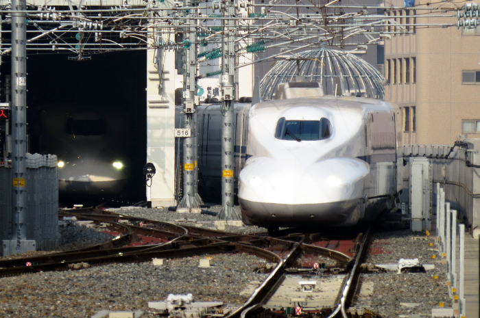 新大阪駅新幹線ホームに,700系電車が入線してきました。