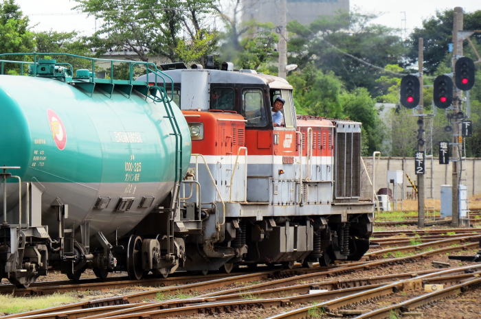 DD51重連から解放されたタンク車に,構内入換え用のDE10が接近しました。 一旦停車,一呼吸おいて,タンク車を連結しました。 DE10はディーゼルエンジンを響かせ,タンク車を側線に移動していきました。 しばらくして,DE10はタンク車を押しながら,側線に戻ってきました。 タンク車を側線に留置して,DE10は解放,定位置に待機しました。 DE10は数分後,入換え作業のため,移動していきました。 観ていて飽きません。 |