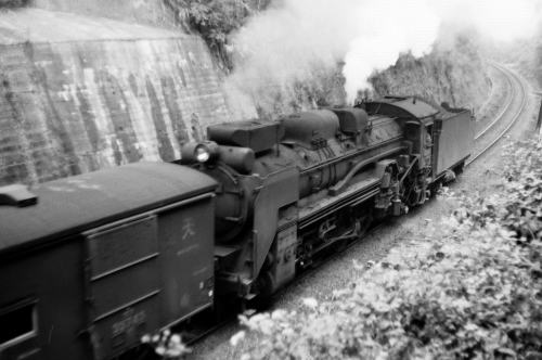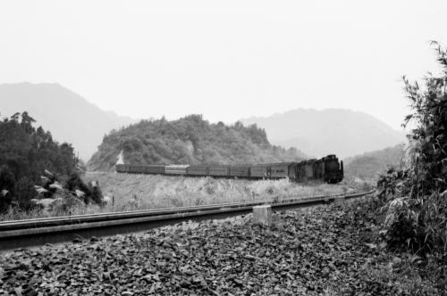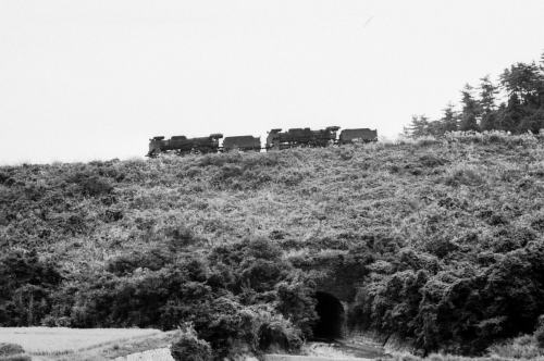 大築堤を下る 本務機D51 145 後補機C58 231 の貨物列車 1971 加太-柘植 〔関西本線〕 |