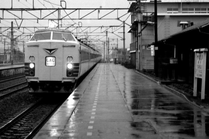 山陽新幹線・岡山-博多開業の前日, 1975年/昭和50年3月9日 16時47分, 雨の柳井駅から 上り“しおじ”の最終列車 “しおじ5号”に乗車しました。 “しおじ5号”の運転時刻は, 下関1455発→柳井1647発→大阪2159着でした。 華やかな山陽特急時代は幕を閉じました。 この一枚の写真が,当時を想い出させてくれました。 |