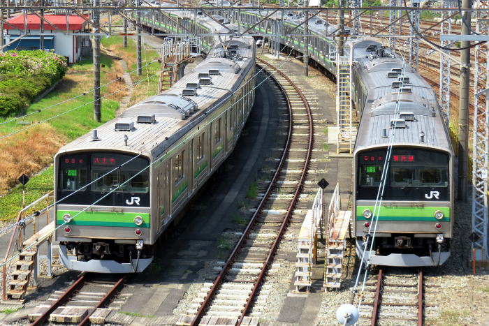 | 東神奈川留置線に留置の205系 H8,H28編成 2013.4.29 東神奈川留置線 〔JR東日本 根岸線〕 | ||
