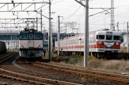 EF60+EF58 ED60は, 1958年/昭和33年登場の ローカル線用の中型の 直流電気機関車でした。 大糸線,仙山線,阪和線に 配置されました。 ED61とともに阪和線で 活躍しました。 1975 竜華機関区〔関西本線〕 |