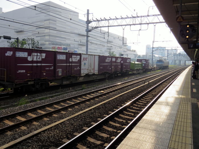 通勤で利用する東海道本線・辻堂駅のホームから,EF66牽引の貨物列車を撮影しました。