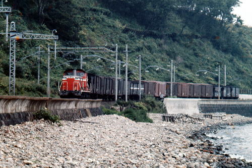 小樽市の東部,函館本線の朝里-張碓-銭函は, 切り立った断崖が迫る日本海沿いを走ります。 1968年/昭和43年,小樽-滝川間が北海道で初めて電化されました。 翌年,旭川まで電化され, 北海道用に開発された711系交流電車が小樽-札幌-旭川を 急行かむい,普通列車として運転を開始しました。 1974年/昭和49年,銭函で列車撮影しました。 当時の函館本線の主役は, 711系交流電車,ED76 500交流電気機関車でした。 キハ22,キハ45,キハ56などの混結列車も走っていました。 |