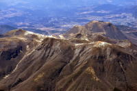 羽田1215発・熊本行 ANA3713便から, 阿蘇山を撮影しました。 別府湾から由布岳を北に見ながら南下し, 阿蘇山の南から熊本空港に向かいました。 阿蘇五岳,中岳火口を間近に観て, 阿蘇カルデラを越えて着陸しました。 |