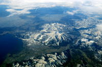 羽田1140発・苫小牧1315着,JAL1153便の 座席2Aから会津磐梯山を撮影しました。 羽田を飛び立ち,しばらくは霞んでいましたが, 雲が切れ,猪苗代湖が見えました。 つぎに,雪化粧した磐梯山が見えてきました。 飛行機は,猪苗代湖から北北東に飛びました。 |