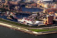 熊本から羽田への帰り便で, ディズニーリゾートを撮影しました。 飛行機は,千葉から幕張,舞浜と 東京湾岸に沿って降下しながら飛行! ディズニーシーの客船S.S.コロンビア号を見つければ, そこは,ディズニーリゾート! |
