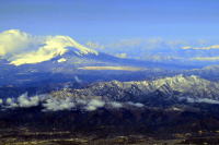 羽田900発・福岡1050着,ANA245便の座席22Aから 富士山を撮影しました。 羽田を飛び立ち,高度が上がると右方向に, 雪をかぶった富士山が見えました。 飛行機は富士山の方向に進み, 富士山の山頂を観ながら南西に向かいました。 |