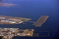 羽田1215発・熊本行 ANA3713便から, 羽田空港を撮影しました。 羽田空港を離陸,西に高度を上げる途中, 羽田空港のD滑走路が見えました。 つぎに,A・B滑走路と周辺の飛行機が見え 京浜工業地帯上空を西に向かいました。 |