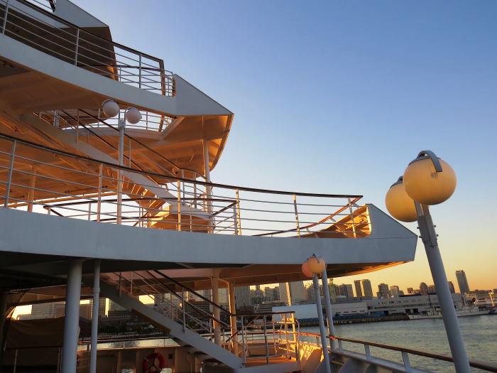 | ●夕陽に輝く船尾デッキ(6デッキ) |