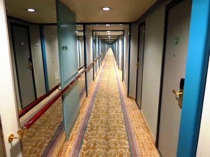| ●客室が並ぶ長い廊下,シープリーズデッキ(9デッキ) |
