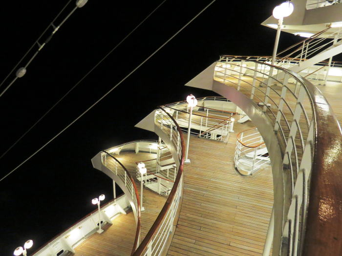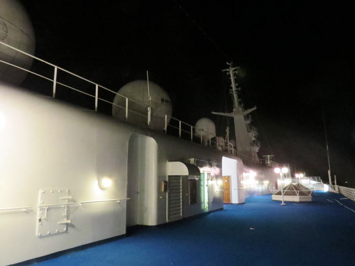| ●暗闇に明るく輝く船尾デッキ(9デッキ) |