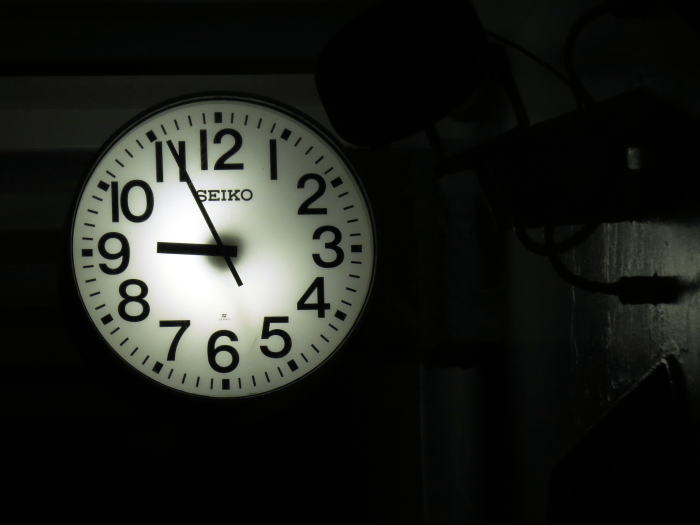 | ●プロムナードデッキの時計がもうすぐ9時を告げる(7デッキ) |