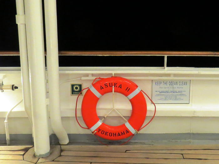 | ●飛鳥Uの救命浮き輪,母港は横浜です。(7デッキ) |