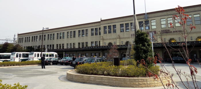 宇治山田駅は伊勢神宮の最寄駅です。 1931年/昭和6年,参宮急行電鉄が全通のとき, ターミナル駅として開業しました。 当時,大阪上本町-宇治山田間を2時間30分で結びました。 1969年/昭和44年,鳥羽線が開業,中間駅になりました。 天皇・内閣総理大臣の伊勢神宮参拝の乗降駅になっており, 駅には貴賓室が設けられています。 駅舎は,東武鉄道/浅草駅を手がけた久野節の設計です。 鉄骨鉄筋コンクリート造りで, 壁面はクリーム色のテラコッタタイルで全面装飾され, 高い天井のコンコースなど優れたデザインの名建築です。 |