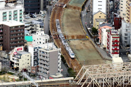 | 大阪梅田・北/西空散歩 ◆梅田の北・西方向に,多くの鉄道が俯瞰できました。 遠く北には, 山陽新幹線がマンション群を縫うように走っています。 北方向には,淀川を渡る鉄道が並びます。 東から,JR西日本東海道本線(京都線), つぎに,大阪市地下鉄・御堂筋線, 阪急電鉄・京都・宝塚・神戸本線が見えます。 梅田スカイビルの北東から梅田貨物線が走ってきます。 西方向にも,淀川を渡る鉄道が並びます。 JR西日本東海道本線(神戸線),阪神電鉄・阪神本線が見えます。 短時間で,多くの鉄道の俯瞰撮影を楽しむことができました。 |
