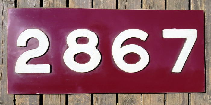 この車輌番号は,2867号の解体時に車体から切り取られたものです。