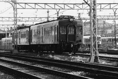 モ2251号+モ2205号 2250形は,2200形の後継として, 1953年/昭和28年に 大阪線の特急専用車として 登場しました。 特急運用引退後は, 2247形として急行運用に就きました。 1974 高安車庫〔近畿日本鉄道 大阪線〕 |