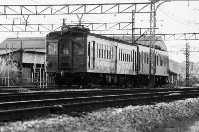 モ2205号 モ2200形は2扉車として 製造されましたが, 昭和35年頃から 3扉車への改造が始まり 昭和44年には, 全車の改造が完了しました。 1974 高安車庫〔近畿日本鉄道 大阪線〕 |