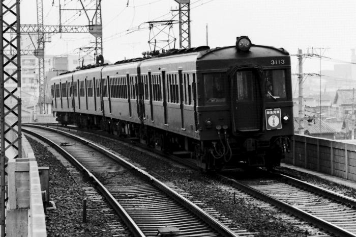 早朝の2200形名古屋行急行 晩年の2200形は, 名古屋線の運用が主でした。 早朝の上本町発名古屋行直通急行に 2200形が運用されていました。 1974 河内山本-高安〔近畿日本鉄道 大阪線〕 |