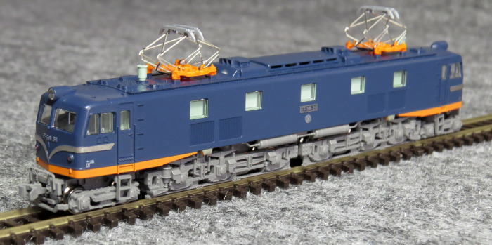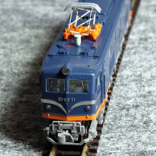国産初のNゲージメーカーである関水金属 KATOのNゲージ製造40周年記念として, 2005年に発売された“EF58試験塗装機4輌セット”です。 EF58は,1946-48年/昭和21-23年に鉄道省型の電気機関車として誕生しましたが, 1952年/昭和27年,高速運転性能に優れた機関車に大改良され量産が開始されました。 新EF58は,流線形車体のスマートで精悍な電気機関車として人気がありました。 普通列車から優等列車を牽引する旅客用機関車として, 1950年代から東海道・山陽本線,高崎・上越線,東北本線などに運用されました。 1950年当時は,電気機関車は濃茶色(ぶどう色2号)に塗装されていましたが, 1956年の東海道本線全線電化先立つ1954年に, 特急“つばめ”,“はと”を牽引するEF58の車体塗色を検討するため, 4,16,18,31号機に試験塗装されました。 その結果,特急“つばめ”,“はと”の牽引EF58には, 4号機に塗装された淡緑色の車体に,下部を黄色に塗装した塗色が採用されました。 濃淡緑色の上下2トーンに彩色された4号機は, 東海道本線全線電化時の記念切手に描かれています! その後,特急“つばめ”,“はと”は電車化され,淡緑色塗色は消滅しましたが, 寝台特急ブルートレイン牽引用EF58に, 青色車体に下部クリーム色の塗色が採用されました。 |