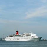 “オーシャン・ドリーム”はカーニバル・クルーズ・ラインがTropicale(トロピカール)として 1981年/昭和56年に,デンマークで建造されました。 2001年/平成13年,コスタ・クルーズに移籍して“Costa Tropicale”に改名, さらに,2008年/平成20年,プルマントゥール・クルーズに売却され“Ocean Dream”に改名されました。 現在は,国際交流を目的とするNGOであるピースボートが地球一周の船旅を運航しています。 “オーシャン・ドリーム”は,2012年5月に横浜大桟橋に初来航しました。 2015年は,第87回地球一周クルーズとして,横浜を4月12日に出港,神戸に寄港して世界に向かいました。 105日間の船旅を終えて,この日7月25日7時に横浜入港,13時には終着・神戸に向けて出港しました。 |