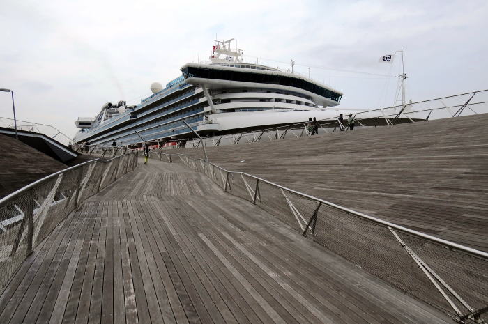 | ●ダイアモンドプリンセスが,丘に接岸したように見えます。 |
