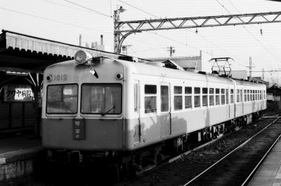 1000形・1012号 1960年/昭和35年製造の 2輌編成1本(1011+1012)の 自社発注車。 2003年/平成15年に廃車。 1974.3.20 仏生山〔高松琴平電気鉄道 琴平線〕 |