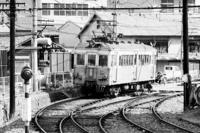 920号 元宇治川電気の51形(64)で, 1928年/昭和3年製造です。 1949年/昭和24年に 山陽電鉄100形(107)に改称され, 1954年/昭和29年に廃車になり 車体のみが琴電に譲渡されました。 琴平線から志度線に運用され, 1983年/昭和58年に廃車。 1974.3.20 高松築港〔高松琴平電気鉄道 琴平線〕 |