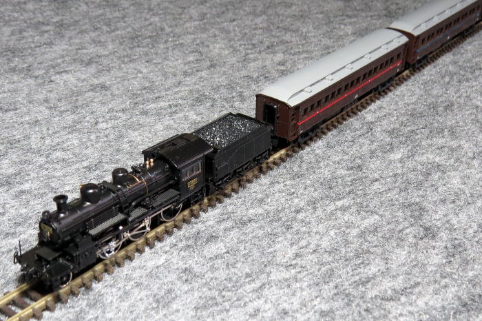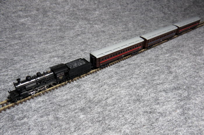 関水金属 KATO Nゲージ生誕50周年記念製品 C50形蒸気機関車です。 わが国初のNゲージモデルは, 1965年/昭和40年に関水金属 KATOが発売したC50とオハ31形客車でした。 当時は機関車本体に搭載できる小型モータはなく, 初代C50は,テンダ(炭水車)に搭載したモータからジョイントを介して 機関車の動輪を駆動しました。 3代目に当たるこのC50は,超小型コアレスモータ,フライホイールの採用などにより 安定した走行性能を発揮するとともに, 見応えのあるディスプレイモデルとしてのスタイル,精密さを実現しています。 C50は,大正生まれの8620形機関車に代わる旅客列車牽引機関車として, 1929〜33年/昭和4〜8年に154輌が製造されました。 日本海側と四国を除く全国に配置され, 大都市近郊の快速列車や急行軽貨物列車などに活躍しました。 晩年は,入換え機として運用され,1974年/昭和49年に全車廃車になりました。 |