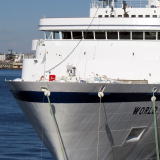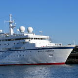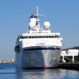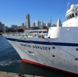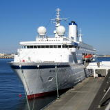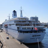 バハマ船籍の米国客船“ワールド・オデッセイ”が,横浜に初来航しました。 “ワールド・オデッセイ”は,1998年,ドイツ籍のクルーズ客船“ドイッツェランド”として就航しました。 2015年に,米国のAbsolute Nevada アブソリュートネバダに売船され, 冬季はSemister at Sea,夏季はPhoenix ReisenによりDeutschlandとして運航されます。 今回は,バージニア大学の洋上大学船“ワールド・オデッセイ”として, サンディエゴからサウサンプトン 103日間の航海中に,ホノルルから横浜に寄港しました。 |