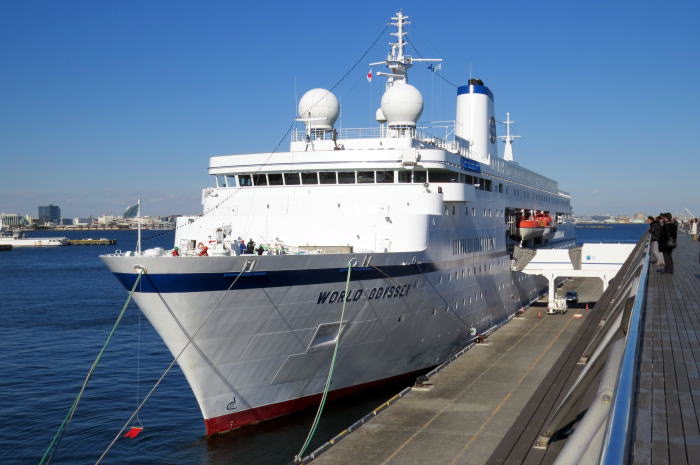 22496G.T./175m/23m/1988年就航 船籍港 MATA UTU〔バハマ〕 COMPAGNIE DU PONANT バハマ船籍の米国客船“ワールド・オデッセイ”が,横浜に初来航しました。 “ワールド・オデッセイ”は,1998年,ドイツ籍のクルーズ客船“ドイッツェランド”として就航しました。 2015年に,米国のAbsolute Nevada アブソリュートネバダに売船され, 冬季はSemister at Sea,夏季はPhoenix ReisenによりDeutschlandとして運航されます。 今回は,バージニア大学の洋上大学船“ワールド・オデッセイ”として, サンディエゴからサウサンプトン 103日間の航海中に,ホノルルから横浜に寄港しました。 |