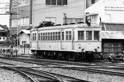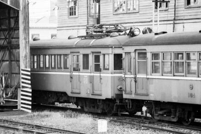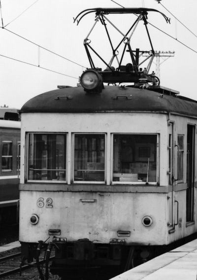60系・デハ62号とデハ30形・31号 60系は元西武鉄道モハ221形・クハ1221形。 1960年/昭和35年製造。 急行列車用に改造。 デハ62-クハ162は1982年/昭和57年廃車。 デハ31は, 元国鉄モハ1057(1921年/大正10年製造)。 1986年/昭和61年廃車。 |
