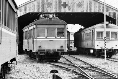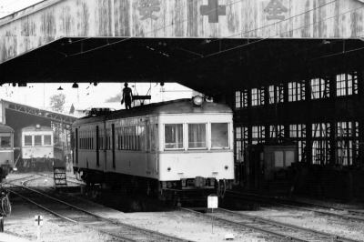 デハニ53号とクハ100形・104号 デハニ53は1929年製造。現在も在籍。 クハ100形は元西武鉄道クハ1231形。 1958-59年/昭和33-34年製造。 クハ104は1981年/昭和56年廃車。 デハニ50形 53+クハ100形 104 1974 平田市〔一畑電気鉄道 北松江線〕 |