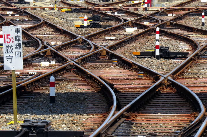 桂車庫の入庫線にも,2か所のシングル・スリップポイントを見つけました。