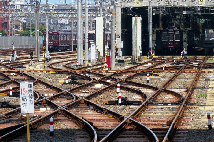 阪急電鉄・京都本線の桂駅構内,桂車庫にシングル・スリップポイントがあります。
