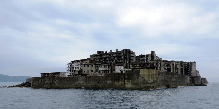 | 出港して45分で軍艦島(端島)到着,軍艦島を一周して上陸,約1時間見物 → 上陸の様子 | |