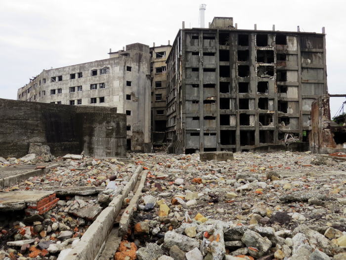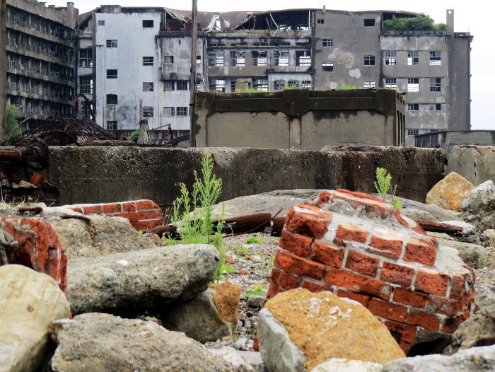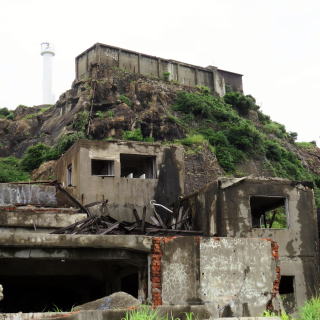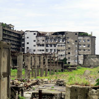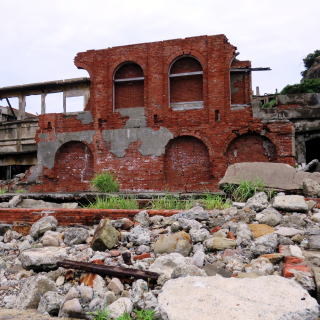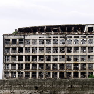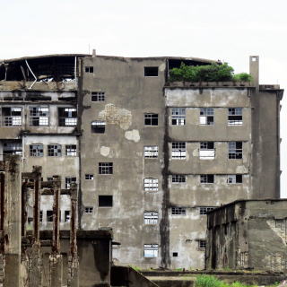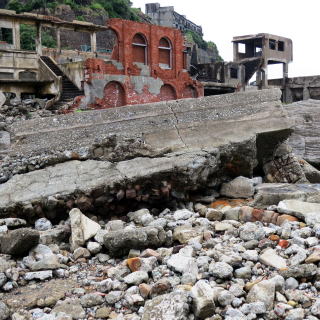 軍艦島クルーズでは, 海が荒れて上陸できないことが多くあるそうですが, この日は,上陸することができました。 上陸すると見学ルートにしたがって, 3ヶ所の見学広場から建物群を見ることができます。 建物の崩壊危険から建物に近づくことは許されず, 残骸が散乱した場所に設けられた見学広場から, 高層アパートなどを眺めました。 端島小中学校は,窓ガラスがところどころに残り, 独特の雰囲気を醸し出していました。 |