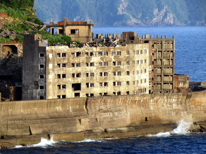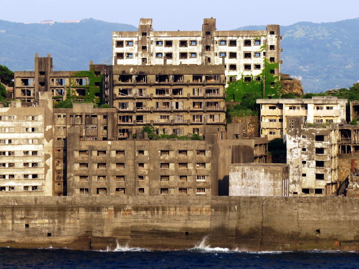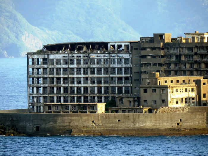 | 長崎にはダイヤモンドプリンセス(116000総トン)のクルーズ旅で来訪しました。 長崎を出港したダイヤモンドプリンセスは, 夕陽に輝く軍艦島を右に観ながら天草灘に向かい航行しました。 明るく照らされた建物群は,遠目には,人が住んでいるような錯覚を覚えますが, 望遠レンズに見える朽ちた光景は,無人であることを納得するに十分でした。 上陸したときとは,異なる印象がありました。 |