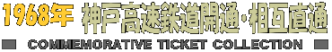 神戸市街地輸送の高速化・大容量化を目的に, 神戸市に乗入れる鉄道会社4社(阪急,阪神,山陽,神鉄)と神戸市が神戸高速鉄道を設立し, 1968年/昭和43年に,東西線(阪急,阪神,山陽乗入),南北線(神鉄乗入)を開業しました。 阪急電鉄,阪神電鉄,山陽電鉄は東西線に乗入れ,相互直通運転を開始しました。 阪急電鉄と山陽電鉄は,阪急六甲-須磨浦公園間で相互直通運転しました。 この記念乗車券は,神戸高速鉄道の開通,阪急・山陽の相互直通運転開始を記念して発行されました。 |