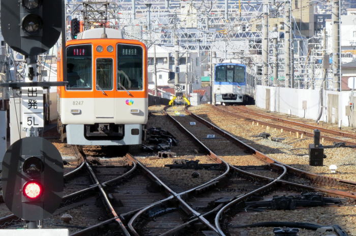 阪神電鉄・甲子園駅の阪神三宮方向にシングル・スリップポイントが2基あります。
