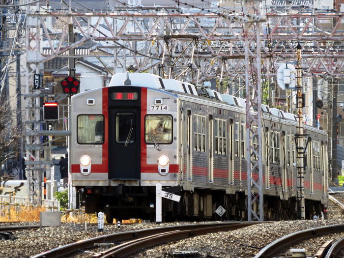 | 蒲田駅に到着する7000系電車 2017.2.7 蒲田〔東京急行電鉄 多摩川線〕 |