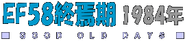 1984年/昭和59年,急客電機EF58が終末期を迎えていました。 EF58は,戦後間もない1947年に登場しましたが, 1952年/昭和27年から当時流行の流線形車体に変更され, スタイリッシュな姿は優等列車の牽引に似合いました。 東海道線,山陽線,高崎線,東北線などの幹線電化に合せて, 運用範囲を広げ,1950〜70年代の客車列車牽引の主力でした。 その後に,客車列車の電車化により活躍範囲は狭まり, 1984年当時,荷物列車牽引が最後の仕事になっていました。 EF58が牽引する東海道線・荷物列車33レは, 東海道旅客線を走る唯一のEF58牽引列車として人気がありました。 当時,荷33レを横浜付近で幾度も撮影しました。 1984年から,東海道・山陽線の荷物列車の牽引が, 碓氷峠の貨物列車廃止により余剰となったEF62に置換わり, EF58に会うことはなくなりました。 |