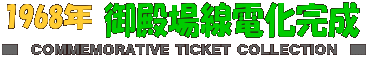 御殿場線は,国府津から御殿場を経て沼津に至る総延長60kmの路線です。 明治から昭和初期は東海道本線でしたが,1934年/昭和9年の丹那トンネル開通により, 東海道本線が熱海経由となり,国府津-沼津間の路線は御殿場線になりました。 1968年/昭和43年4月27日に国府津-御殿場間が電化, 165系電車急行“ごてんば”(東京-御殿場)が運行を開始しました。 この記念急行券は,御殿場線(国府津-御殿場)電化完成を記念して発行されました。 この年7月1日には,御殿場-沼津間の電化も完成し,御殿場線全線の電化が完成しました。 その後,1985年/昭和60年,急行“ごてんば”は廃止になっています。 |