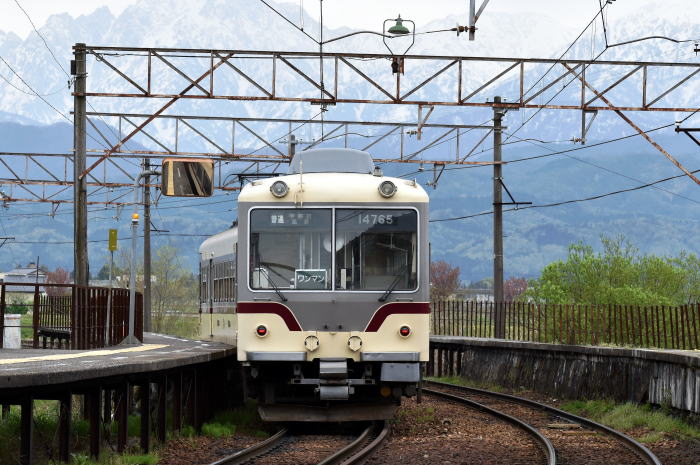 | 寺田駅を発車する14760形(14765)宇奈月温泉行普通電車 2017.4.21 寺田〔富山地方鉄道 本線〕 |