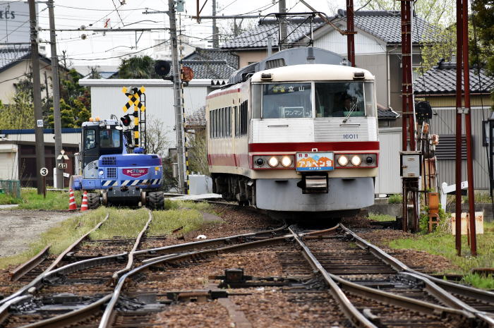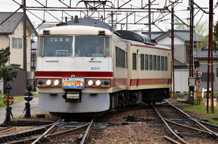 | 寺田駅でスイッチバックする16010形(16011)特急アルペン 2017.4.21 寺田〔富山地方鉄道 本線〕 |